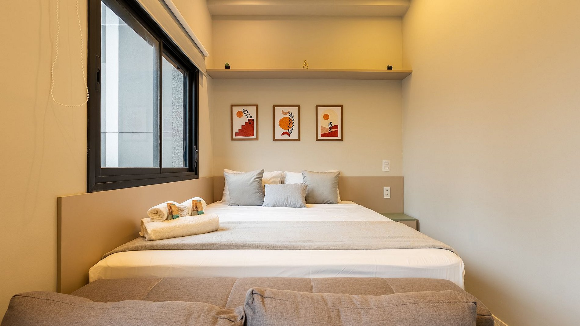Estúdio moderno no 5º andar da Av. Pompeia, com vista privilegiada. Equipado com fechadura eletrônica, climatizador, cozinha completa (cafeteira, chaleira, liquidificador), cama de casal, TV 50”, Wi-Fi, espaço para home office e enxoval de qualidade. Banheiro amplo com steamer e secador. Ambiente decorado, funcional e confortável para sua estadia.