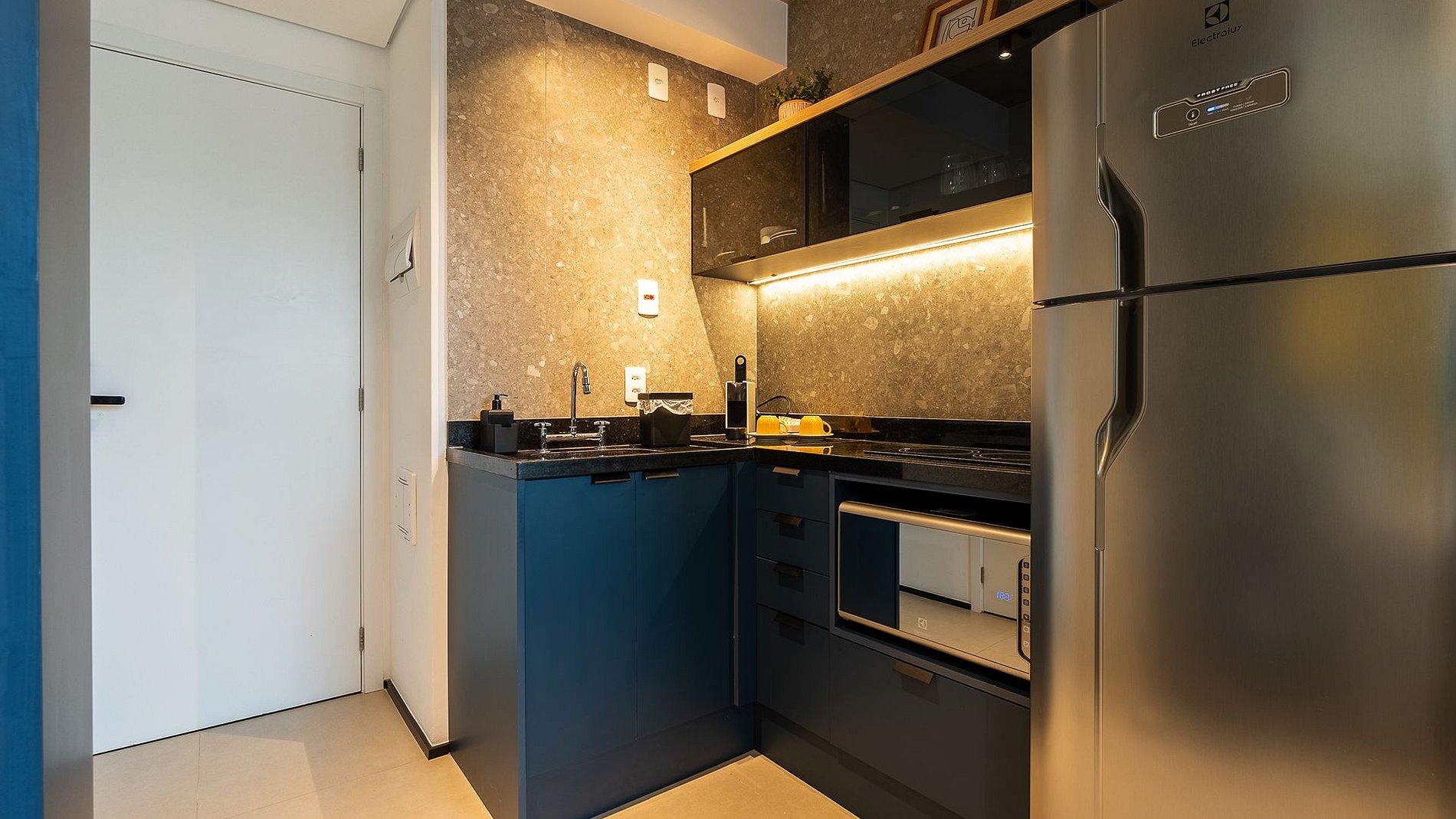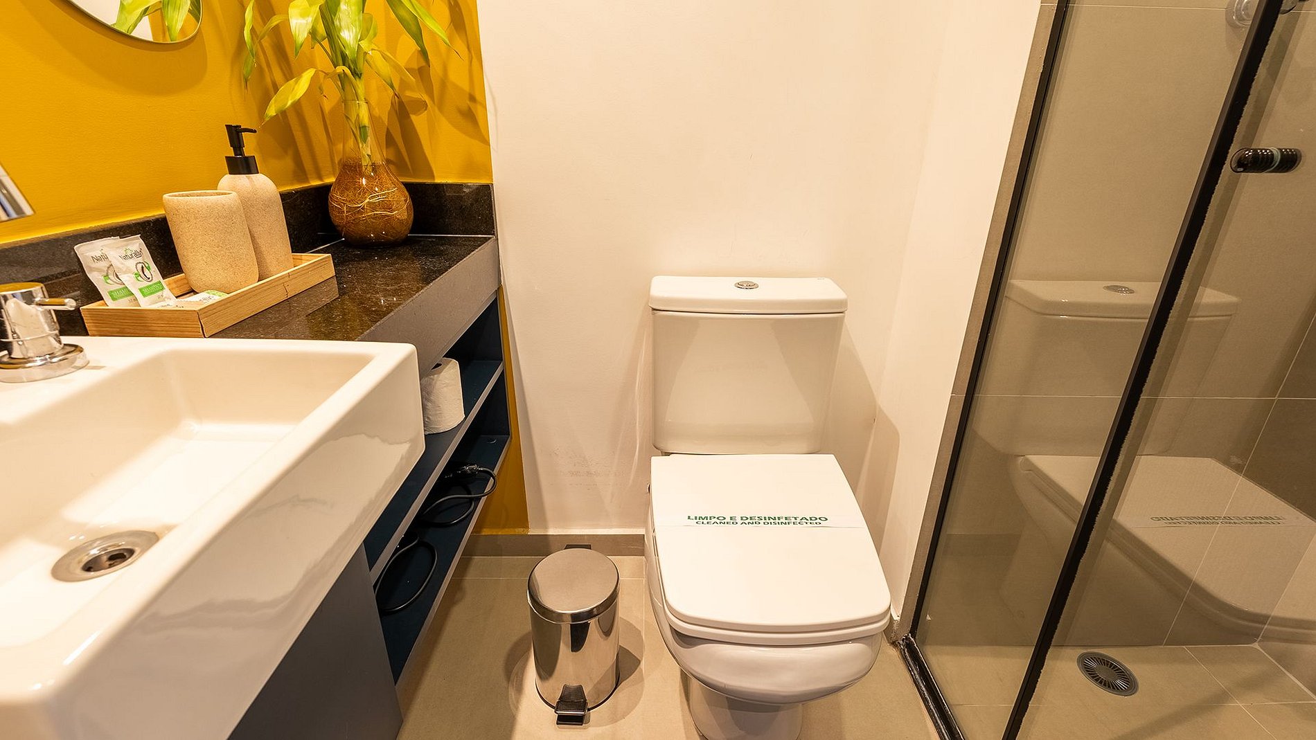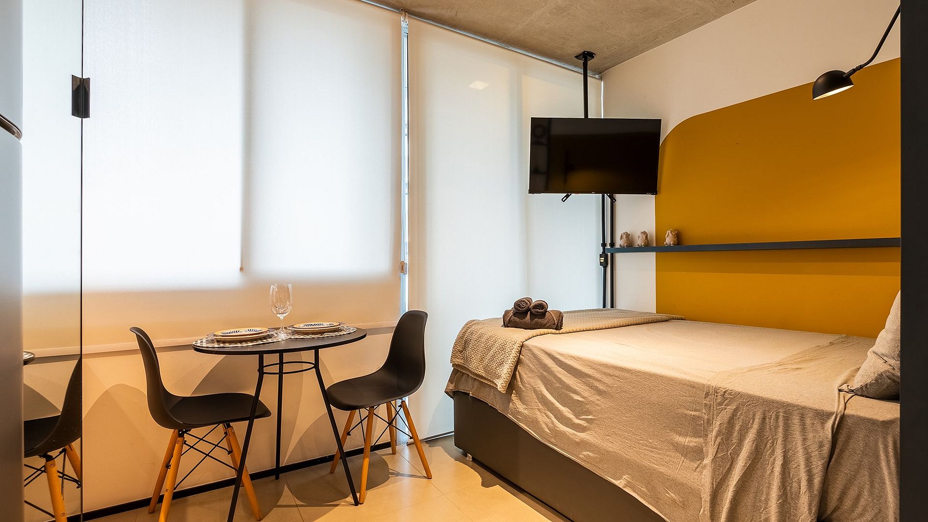 Estúdio moderno e completo com fechadura digital, ar-condicionado inverter, Wi-Fi, TV 50” com canais abertos e fechados, cama de casal com enxoval, cozinha equipada com cafeteira eletrica, secador, steamer e varanda com vista para a Rua Frei Caneca. Conforto, praticidade e estilo em uma das melhores localizações de SP.