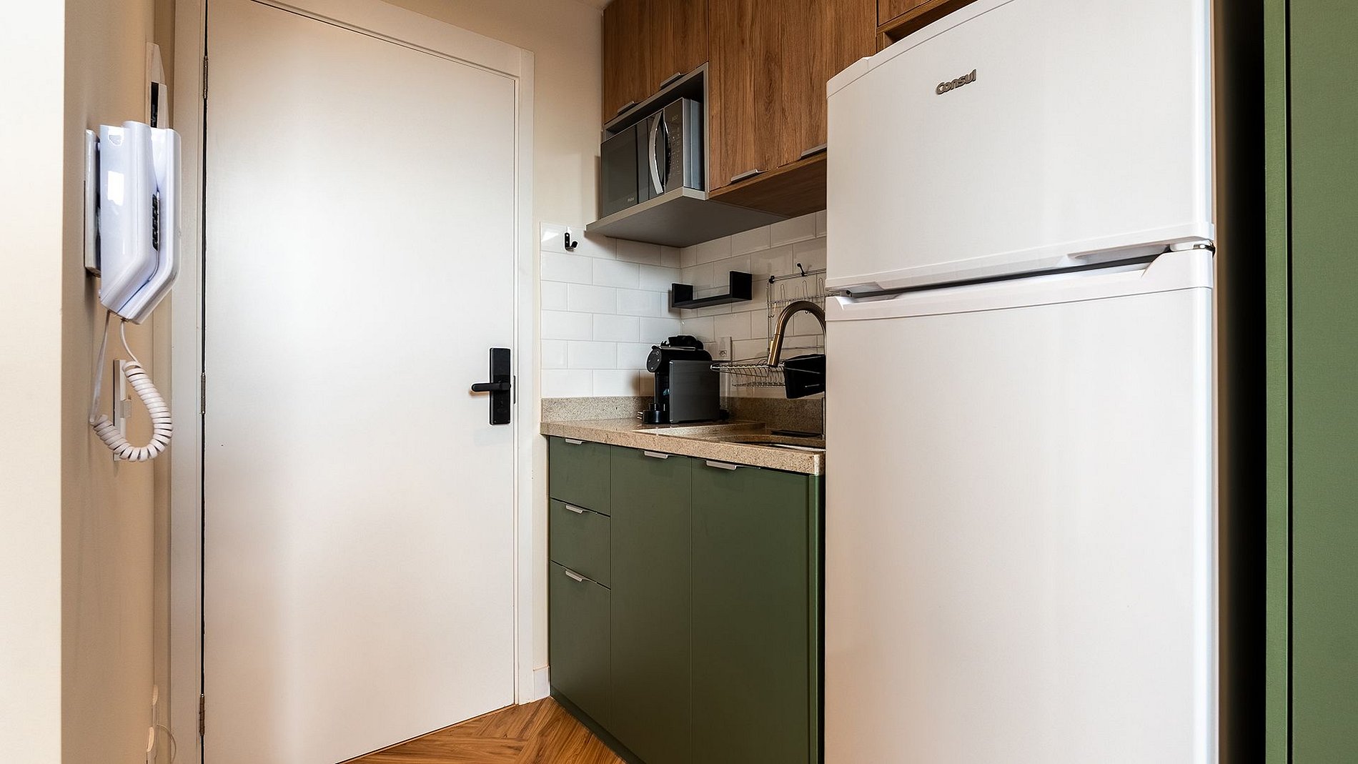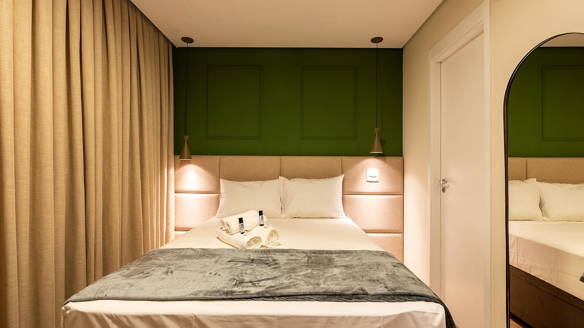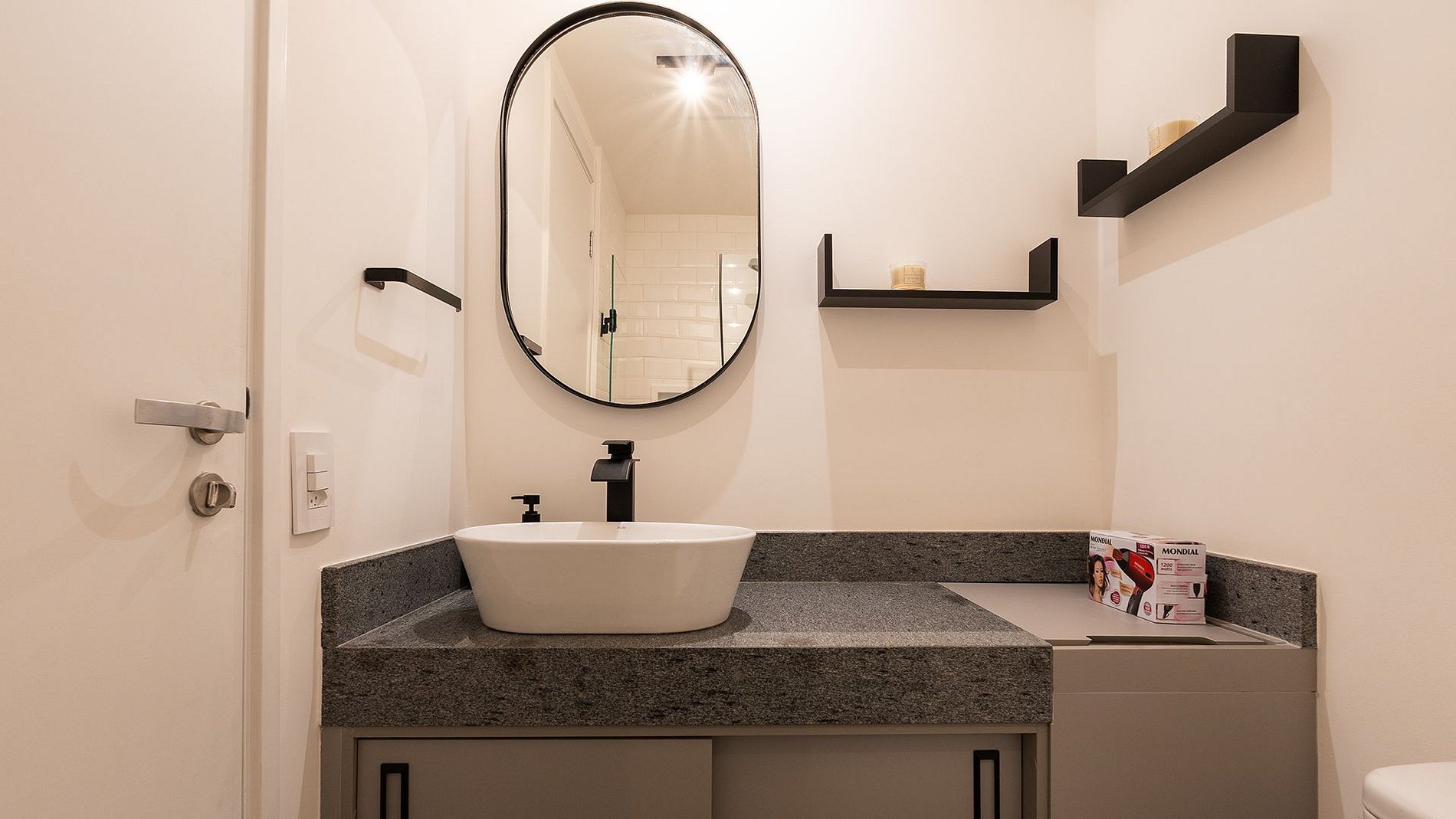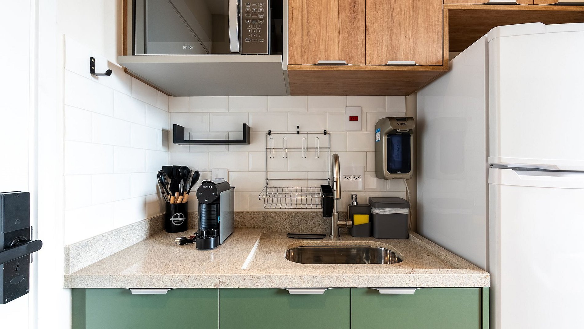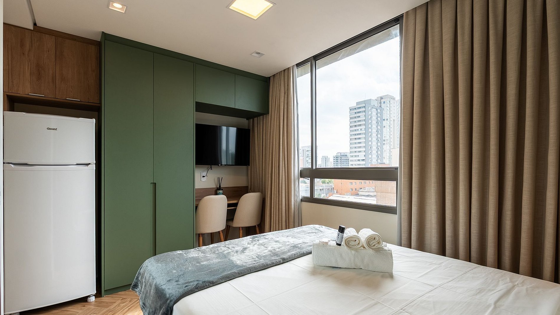 No 7º andar, ao lado do metrô Vila Mariana e Ana Rosa, este estúdio completo é puro conforto: fechadura eletrônica, ar-condicionado, Wi-Fi, home office, cama de casal com enxoval premium e cortina blackout. Cozinha com utensílios, cafeteira Delta e filtro de água. Banheiro com espelho amplo, cesto de roupa suja embutido, secador steamer e uma vista inspiradora para admirar São Paulo.
