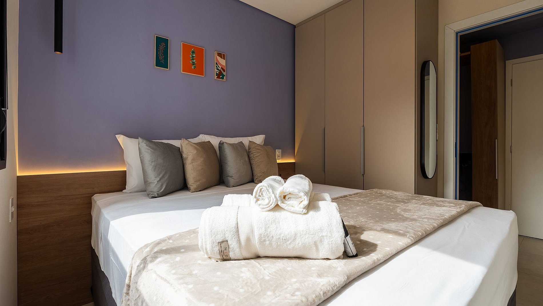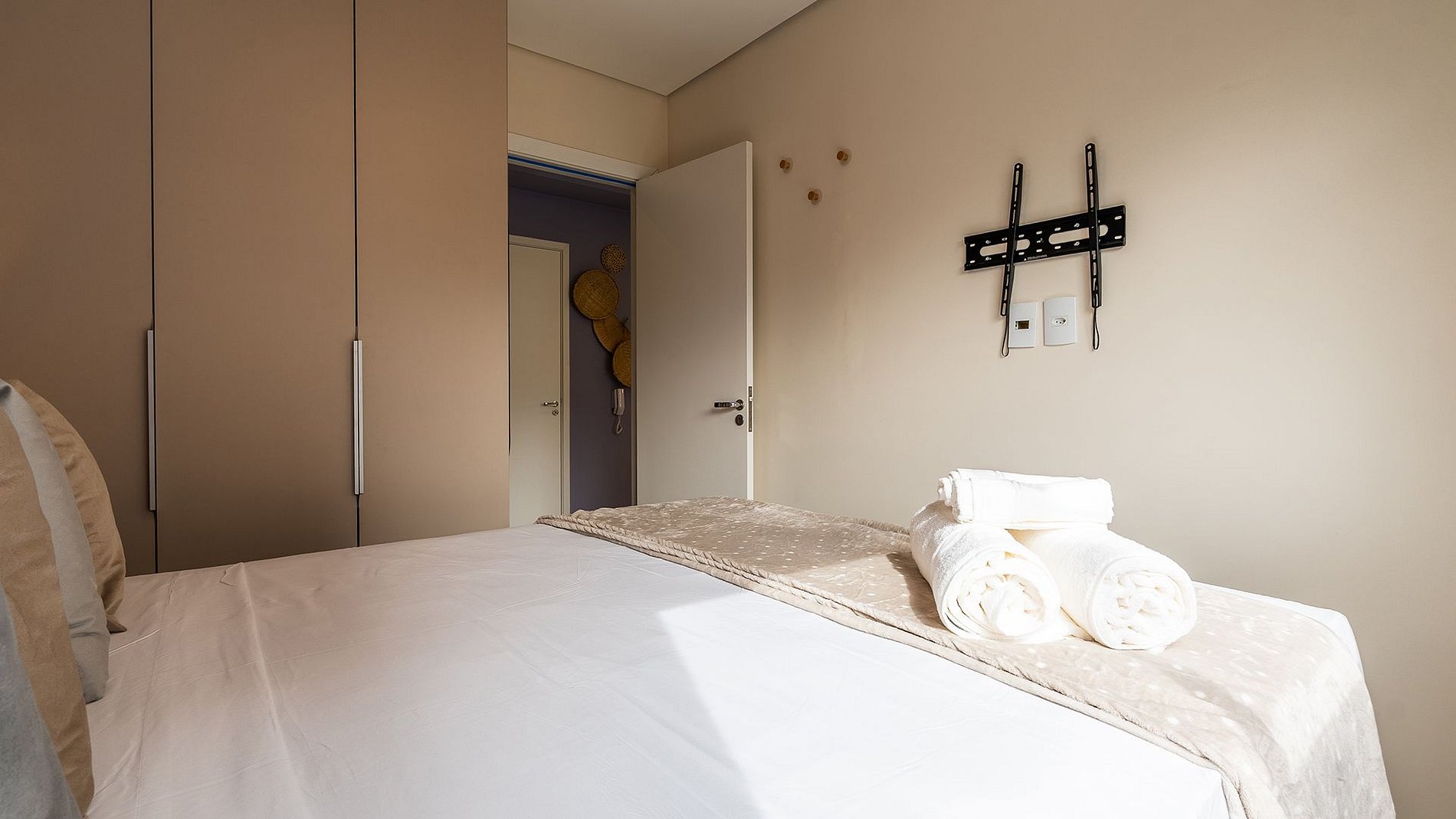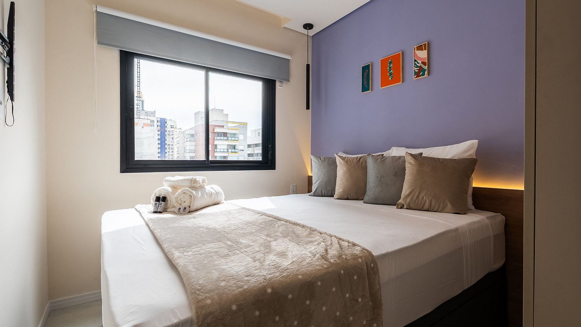 Estúdio moderno no 4º andar da Av. Pompeia, com vista privilegiada. Equipado com fechadura eletrônica, climatizador, cozinha completa (cafeteira, chaleira, liquidificador), cama de casal, TV, Wi-Fi, espaço para home-office e enxoval de qualidade. Banheiro amplo e acessível com steamer e secador. Ambiente decorado, funcional e confortável para sua estadia.