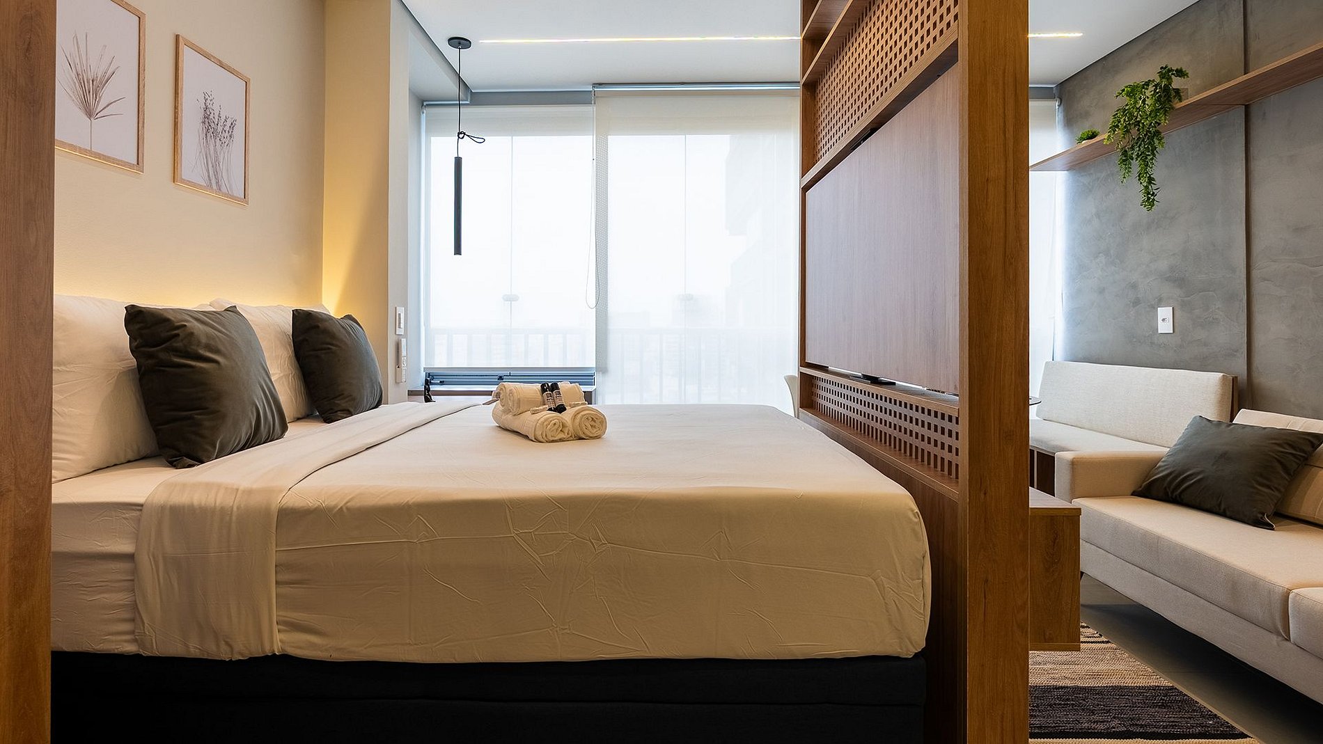 Fornecemos enxoval completo para dois hóspedes contando com: 2 travesseiros, manta, lençóis, toalhas de banho, toalhas de rosto e toalha de piso. Há possibilidade de troca de enxoval mediante solicitação antecipada e com custo adicional. É obrigatório o pagamento de caução no valor de R$ 300,00 para liberação e acesso ao estúdio. O valor será retido como garantia contra eventuais danos e será devolvido em até 7 dias úteis após o check-out, caso não haja nenhuma avaria.