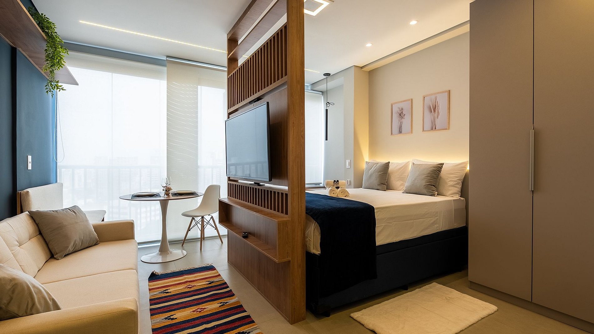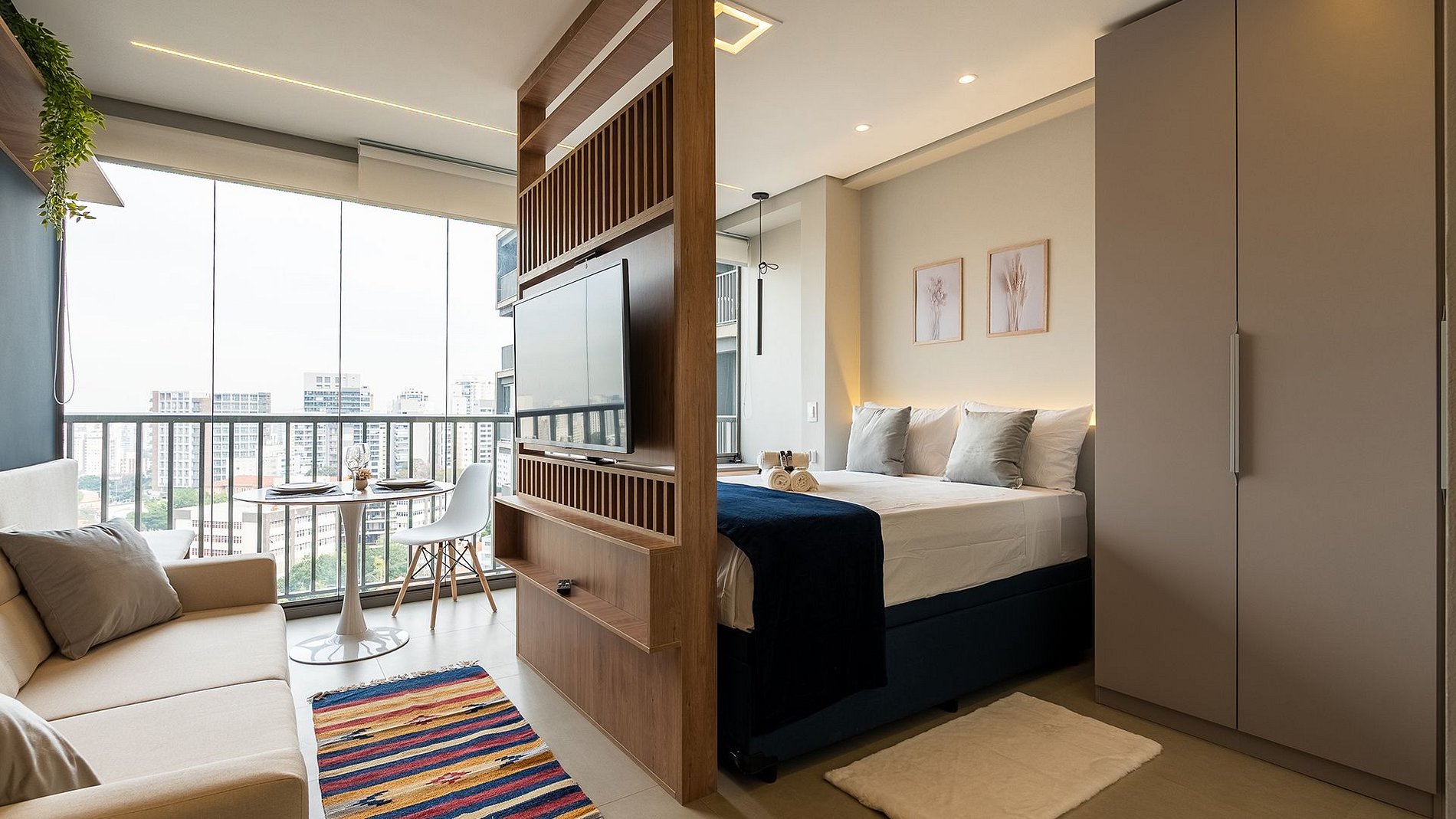 Studio magnífico com varanda integrada e uma vista incrivel na Vila Mariana! Equipado com fechadura eletrônica, ar-condicionado, Wi-Fi rápido, espaço para home office, sofá, TV 50” com suporte rotativo, mesa de jantar, cama casal com enxoval premium, cozinha completa com Nespresso, liquidificador e chaleira elétrica. Banheiro com ducha quente, secador e steamer. Modernidade, conforto e estilo em um só lugar.